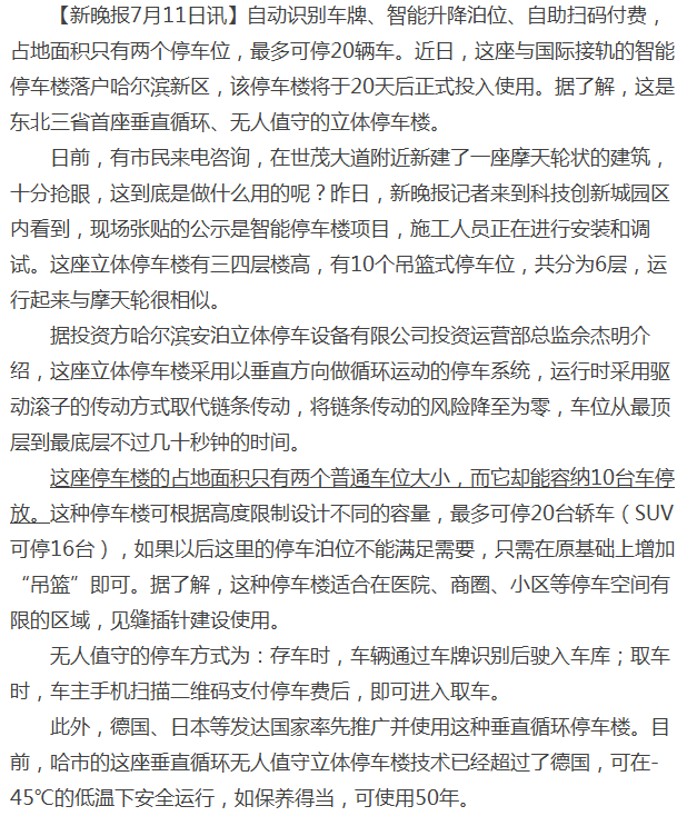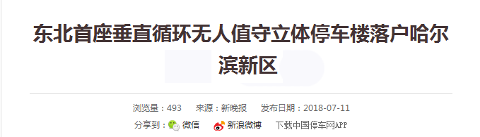 東北首座垂直循環無人值守立體停車樓落戶哈爾濱新區!