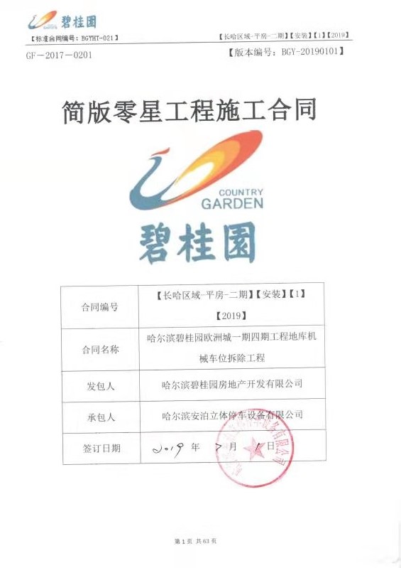 哈爾濱安泊立體停車設備分別在2019年5月、2019年7月拿下碧桂園及中國移動兩個項目