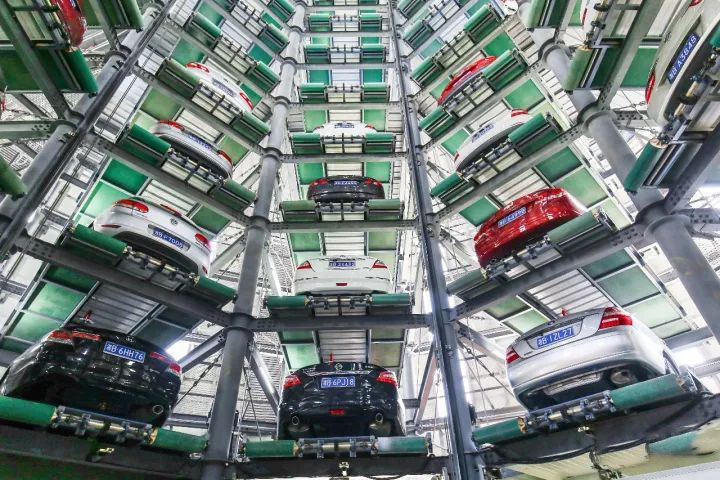 該車庫為目前國內(nèi)較大的四圓塔組合立體車庫,核心技術(shù)“智能化多出入口圓形塔式立體車庫”。停