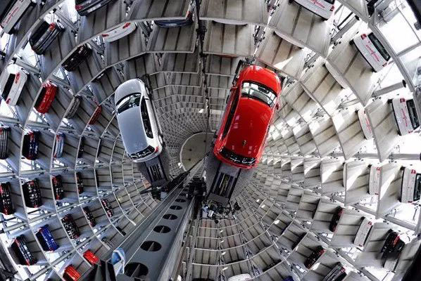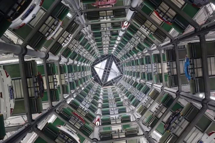 說,就是該停車庫采用的是多通道出入,再利用庫內(nèi)轉(zhuǎn)盤和電梯運送,通過電腦自動停取車輛。