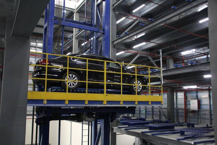 用五層PXD型巷道堆垛式機械停車設(shè)備,車輛停至入口后,使用者即可下車在門口刷卡,升降梯會將車輛運